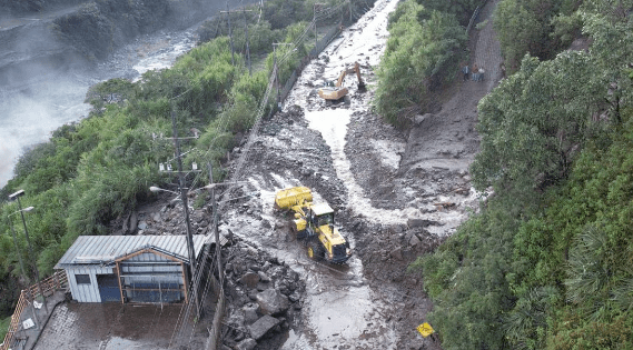Producto de los deslizamientos del domingo 16 de junio hubo afectaciones en la carretera Baños-Puyo, incluso en el sector de Quilloturo, parroquia Río Verde, uno de gran magnitud cobró la vida de catorce personas y dejó daños a viviendas.