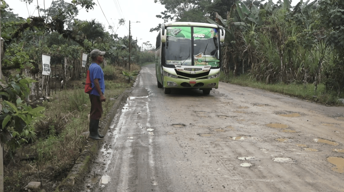 Parece un camino de tercer orden, pero no, se trata de la vía Cristóbal Colón – San Miguel de los Bancos, la cual lleva más de un año sin mantenimiento por parte de la Prefectura de Santo Domingo de los Tsáchilas. Quienes circulan por este acceso denuncian que a menudo sus vehículos se dañan, pues en varios tramos la carpeta asfáltica ha desaparecido y lo único que se visualiza son los enormes baches que dificultan el paso.