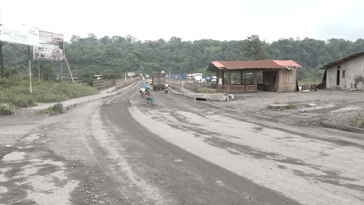 Para la suerte de los conductores varias personas decidieron tapar varios baches que se habían formado al inicio del puente sobre el río Toachi.