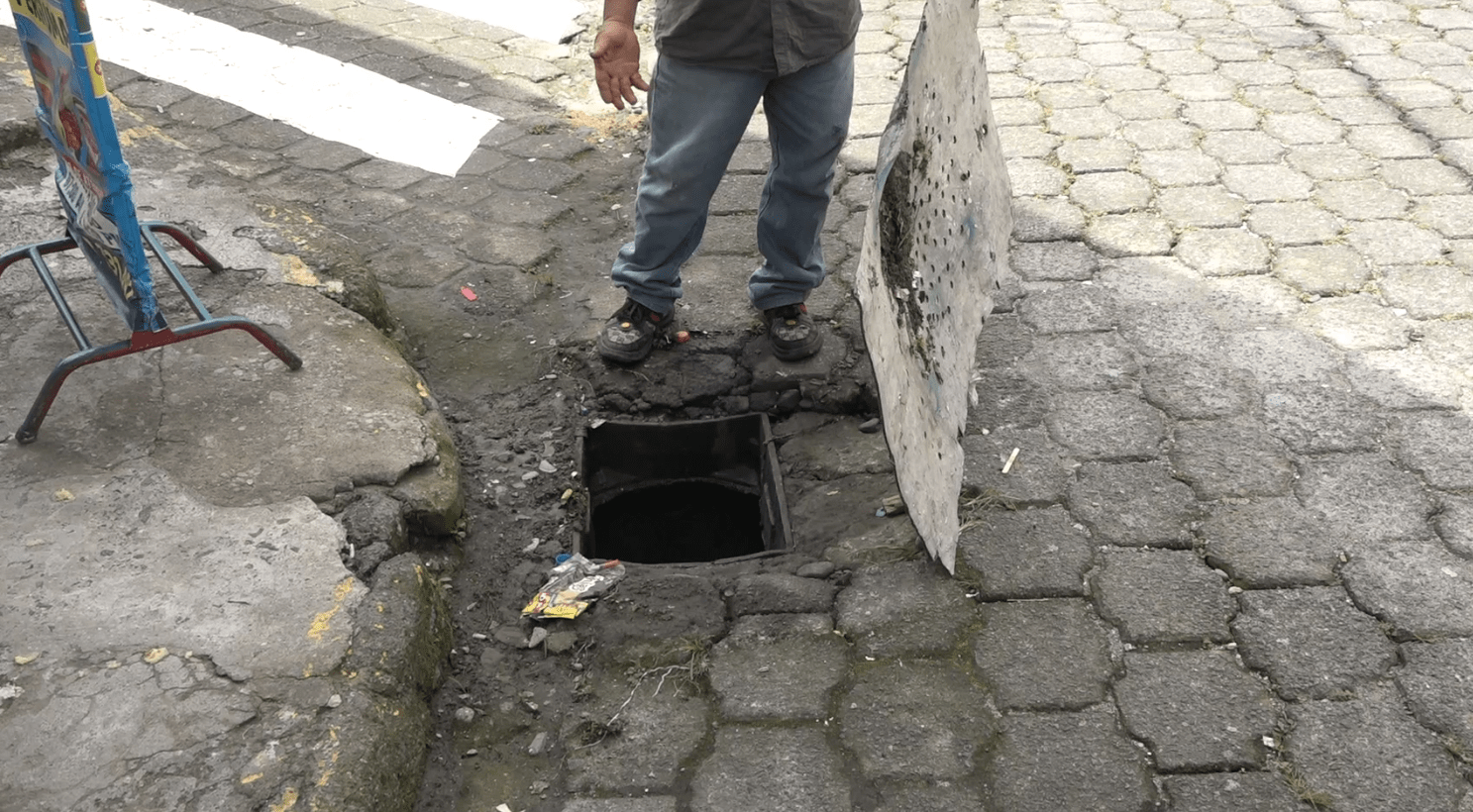 En este mismo punto se han robado una de las rejillas del alcantarillado. Santos Riquelme, lugareño de la zona, manifestó que colocó una tapa improvisada con agujeros para que el ducto no se tape y que ningún estudiante caiga en el sitio.