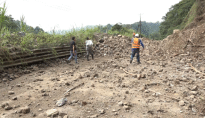 Luego de esto vienen trabajos complementarios como la colocación de la malla, pernos de anclaje y revisión técnica. En el lugar trabajan 30 personas, divididas en 3 grupos. El primero está en la parte rocosa, el segundo en el medio, en la parte maciza; y el tercero se encuentra en la parte más alta, donde está todo el material vegetal más tierra.