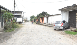 La calle principal está lastrada, pero luce deteriorada y no cuentan con veredas ni bordillos. Los peatones deben caminar entre el pedrero con mucho cuidado para no sufrir alguna torcedura en sus tobillos.