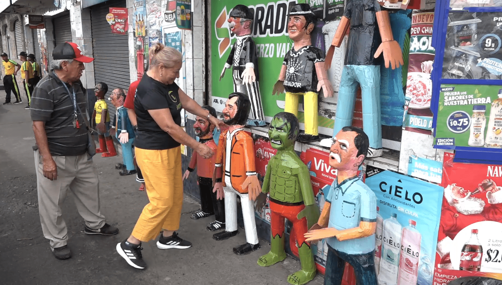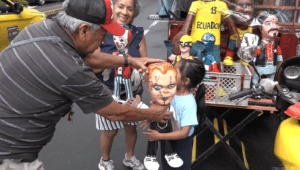 ilias. Este es el caso de Manuel Córdova, quien por 30 años se ha dedicado a la elaboración de los años viejos y es uno de los integrantes de las tres familias que iniciaron con la distribución de monigotes en el cantón. Con un gran detalle ha logrado realizar verdaderas piezas de arte las cuales oferta en la avenida Clemencia de Mora, las figuras se venden entre $4 y 15 y cautivan siempre a sus vecinos y clientes. Los personajes que más le solicitan son: el chavo, jugadores de la selección, las conocidas como Las Nenas y en especial el presidente Daniel Noboa.