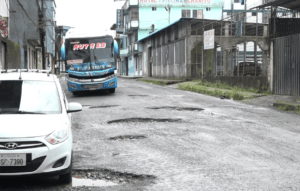 El deterioro de la calle Humberto Fiallos continúa generando malestar entre transportistas, peatones y vecinos del sector aledaño a la terminal terrestre de Santo Domingo. A medida que pasan los días, los baches se profundizan y la movilidad se vuelve más complicada, especialmente tras el cierre de varias arterias cercanas que han incrementado el flujo vehicular en esta vía. Los transportistas exigen a la Dirección de Obras Públicas del GAD Municipal de Santo Domingo una intervención urgente para reparar los daños en este concurrido acceso. Señalan que el mal estado de la calzada no solo retrasa los recorridos, sino que también provoca averías en los vehículos.